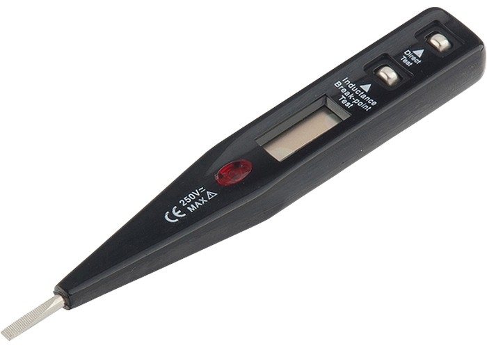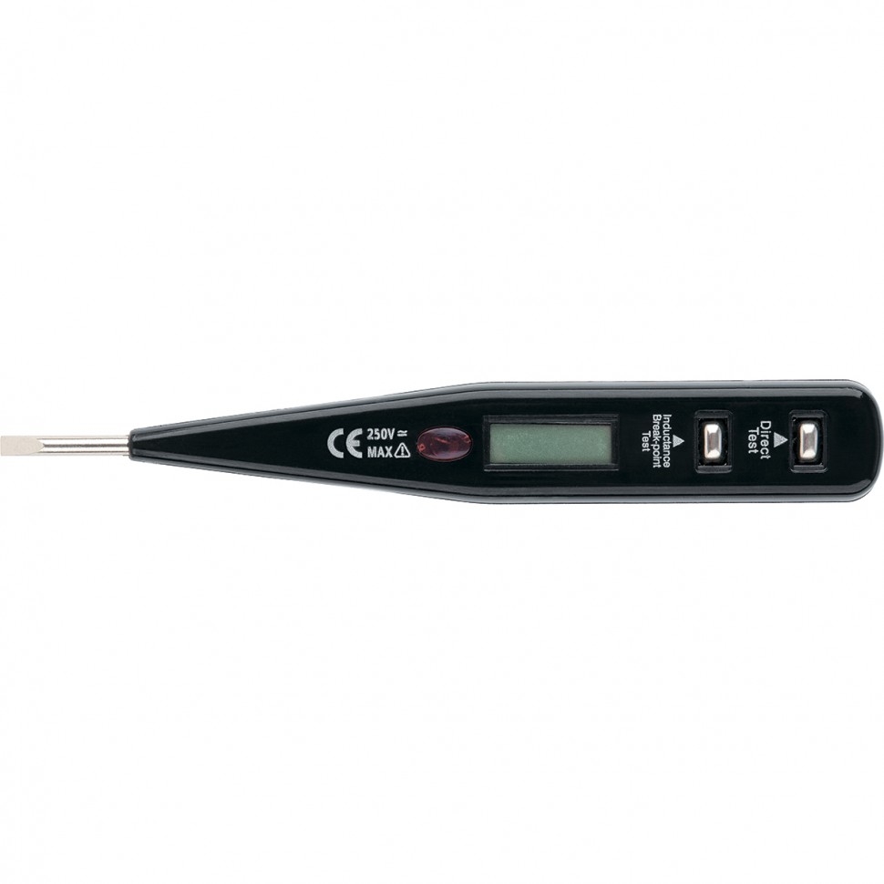 Отвертка-индикатор с профилем прямой шлиц предназначена для определения наличия напряжения в электрических сетях, проверки состояния и полярности аккумуляторов и батареек, проверки провода на наличие разрыва, обнаружения микроволнового и электромагнитного излучения.В полностью изолированную плоскую ручку из пластмассы встроен жидкокристаллический дисплей, показывающий диапазон регистрируемого напряжения.Оснащен встроенной лампой-индикатором, которая загорается при касании наконечником отвертки контакта, находящегося под напряжением.Имеет соответствие по допуску Din VDE 0680 Teil 6 04.77 и евростандарта CE.