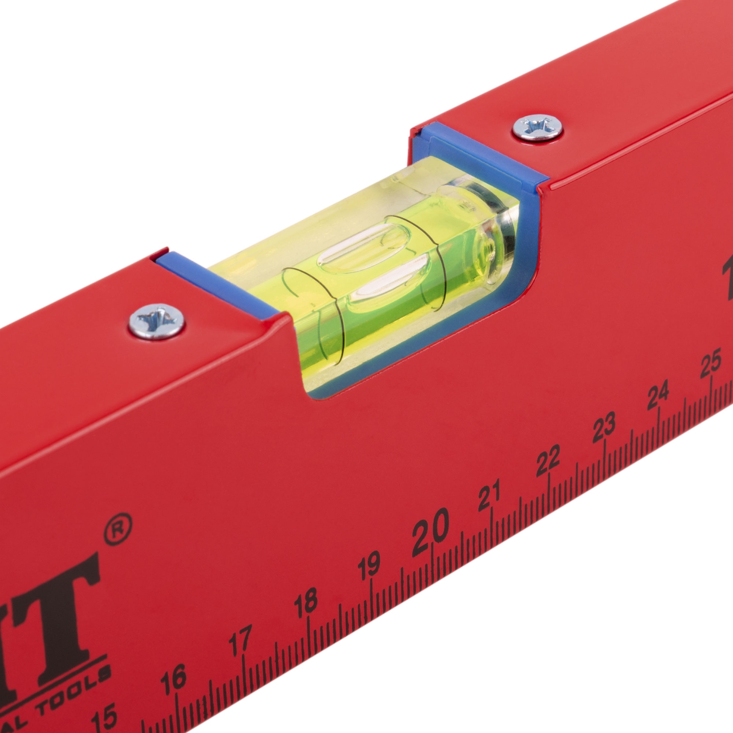 Уровень "Стандарт", 3 глазка, красный корпус, фрезерованная рабочая грань, шкала 400 мм. Материал: алюминий