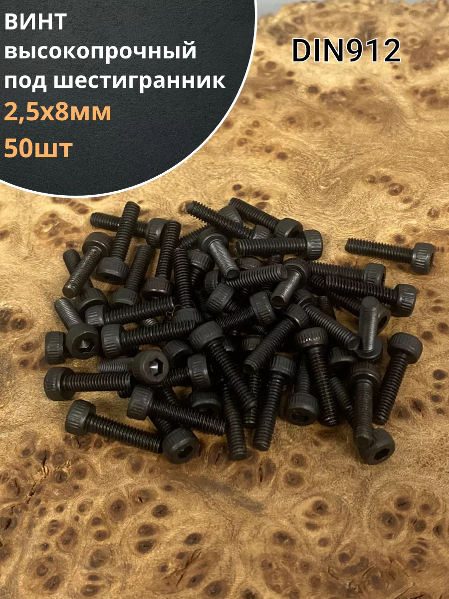 Винт высокопрочный ПР М2,5х8 мм к.п.12.9 черный DIN912, 50 шт.