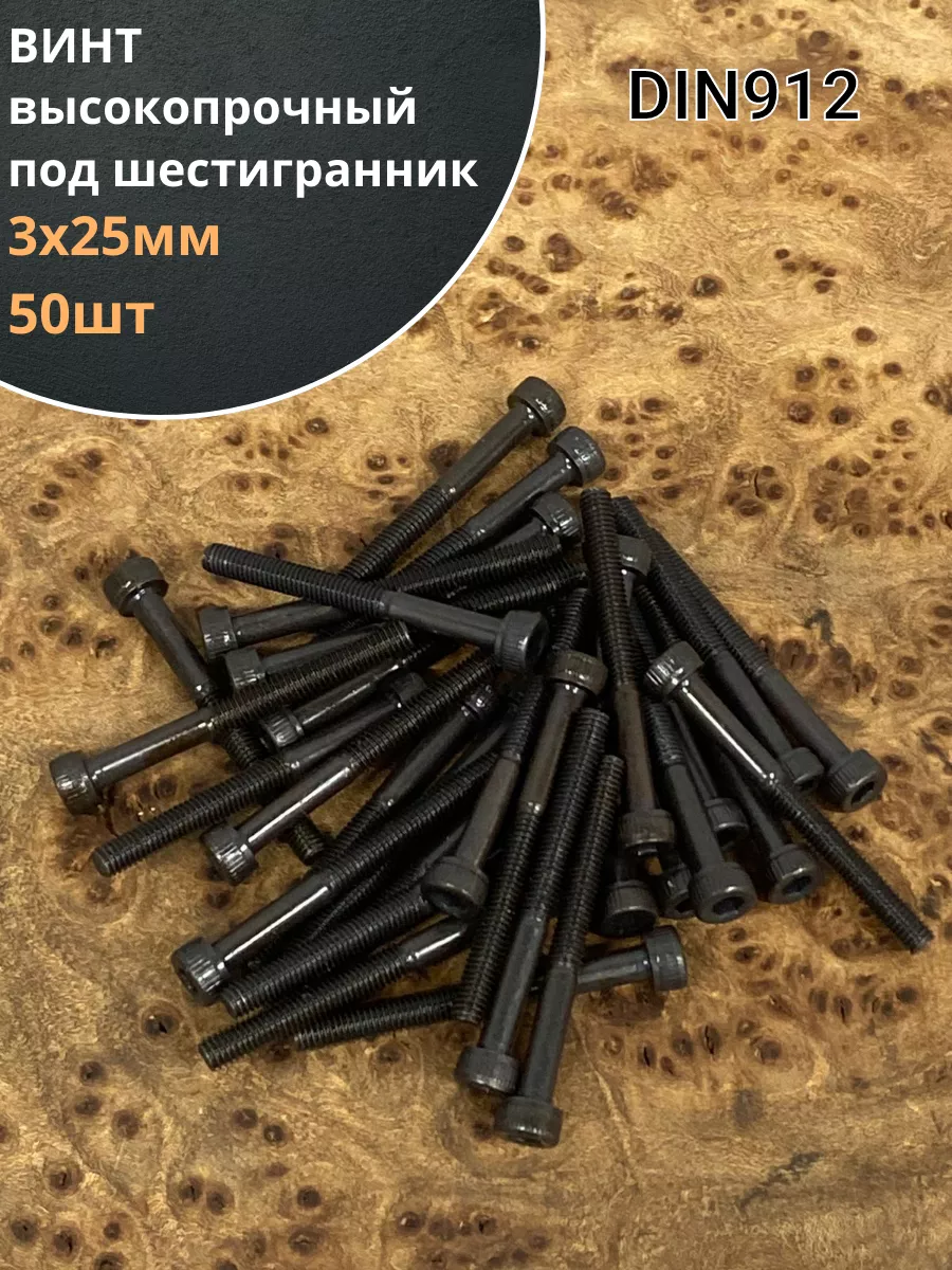 Винт высокопрочный НР М3х25 мм к.п.12.9 черный DIN912, 50 шт.