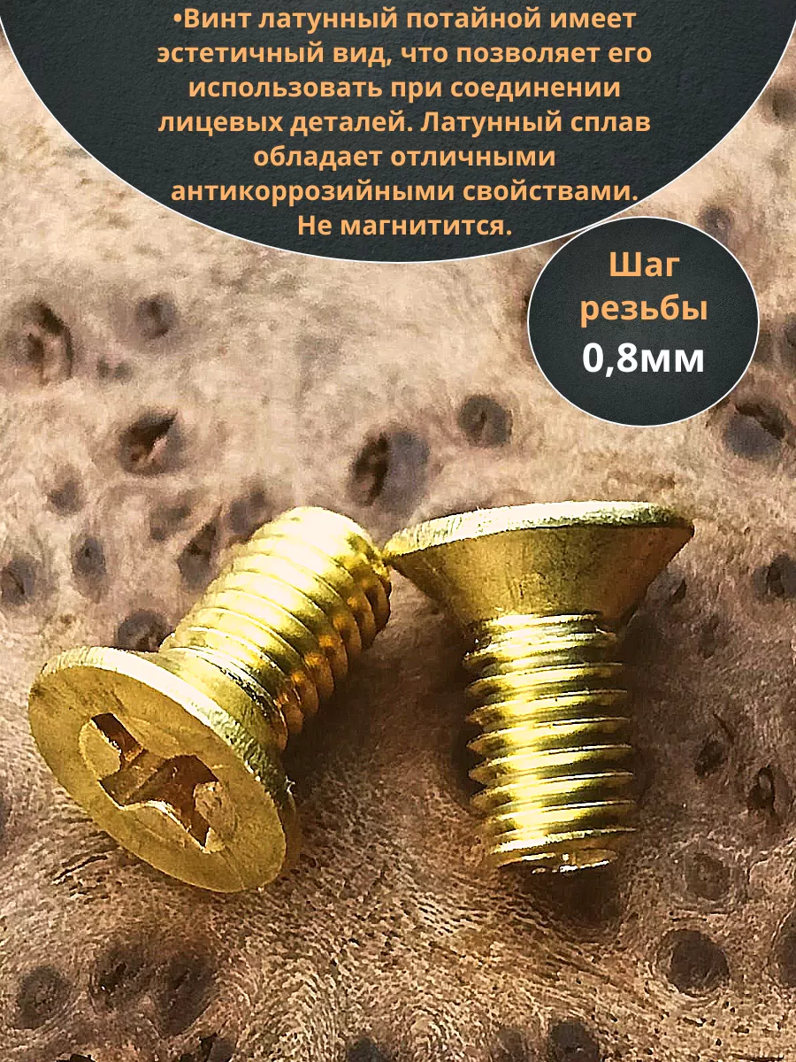 Винт 4х8 латунный потайной DIN965,10 шт