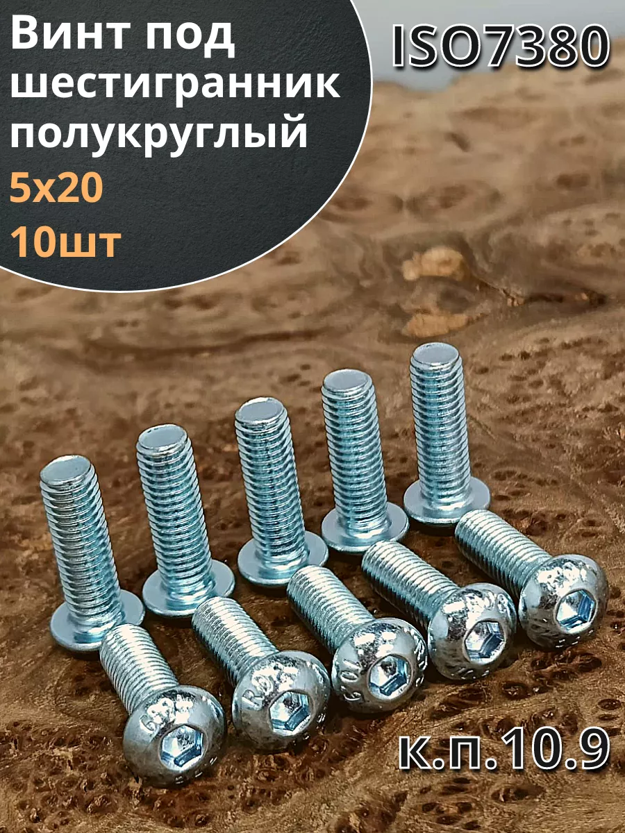 Винт М5х20 с внутренним шестигранником ОЦ 7380 к.п.10.9 10шт