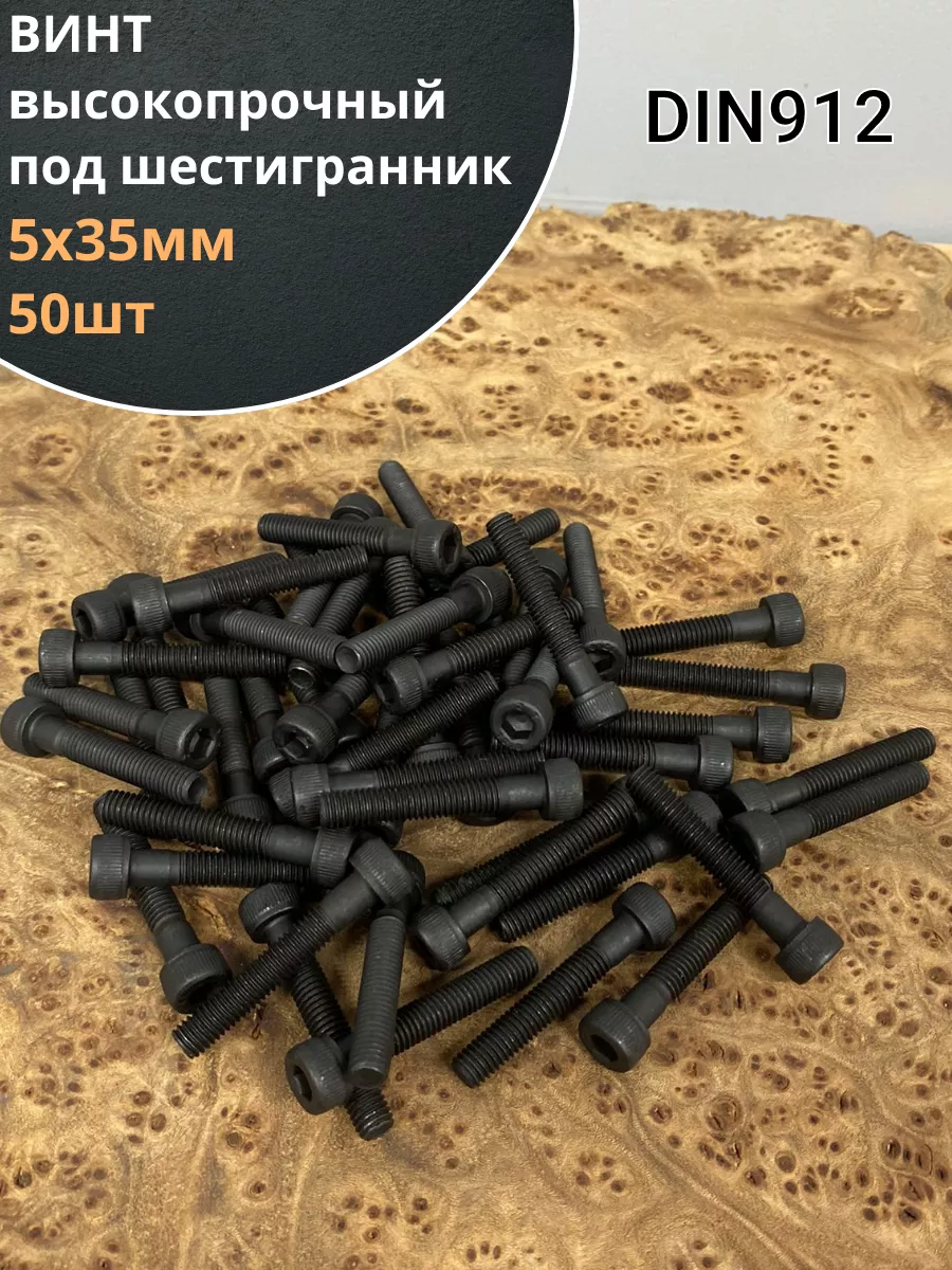 Винт высокопрочный НР М5х35 мм к.п.12.9 черный DIN912, 50 шт.