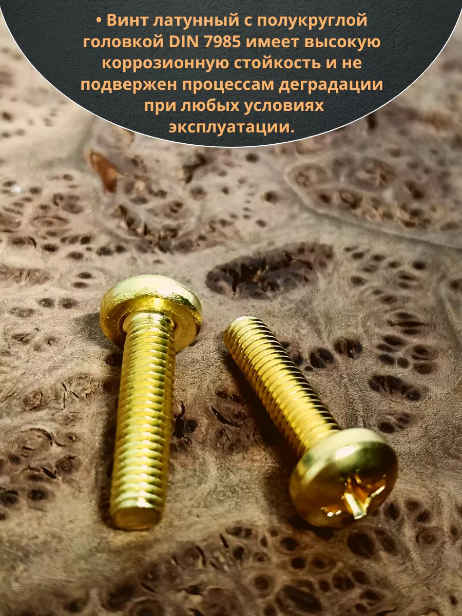 Винт 6х25 латунный с полукруглой гол. DIN7985,10 шт