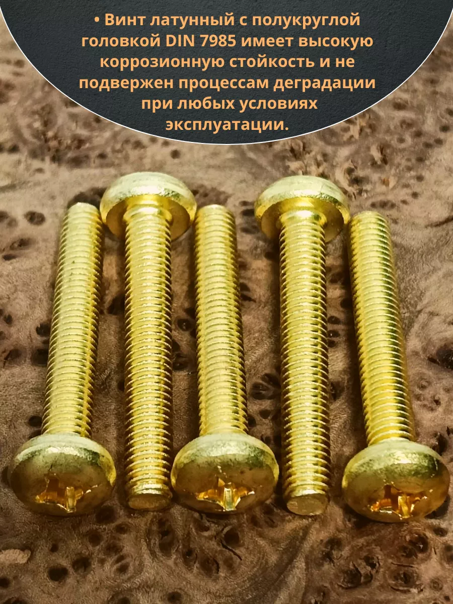Винт 6х30 латунный с полукруглой гол. DIN7985,10 шт