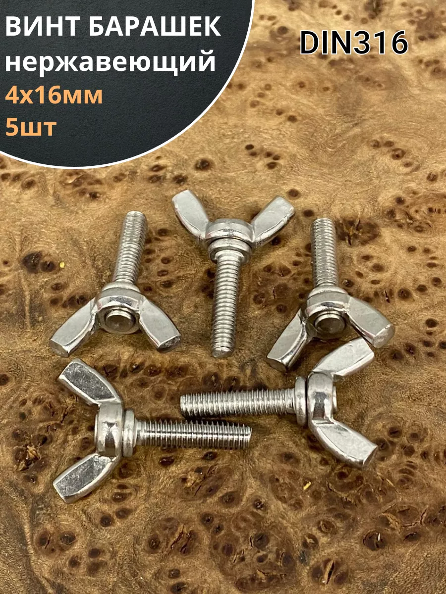 Винт-барашек М4х16 мм , нержавеющая сталь DIN 316 (5 шт.)