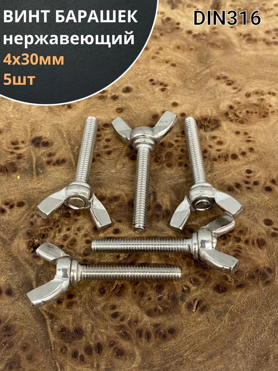 Винт-барашек М4х30 мм , нержавеющая сталь DIN 316 (5 шт.)