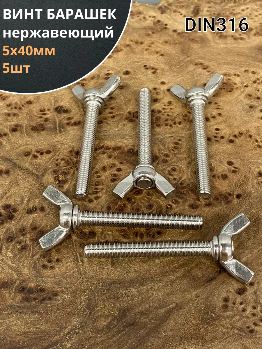 Винт-барашек М5х40 мм , нержавеющая сталь DIN 316 (5 шт.)