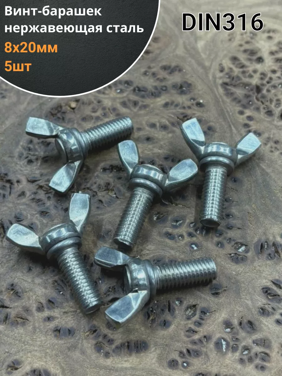 Винт-барашек М8х20 мм , нержавеющая сталь DIN 316 (5 шт.) вб820ф5 1 шт.
