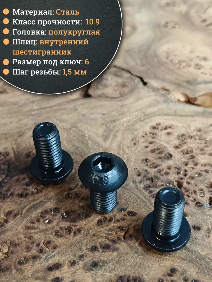 Винт чёрный М10х20 ISO 7380 под шестигранник к.п.10.9, 10 шт.