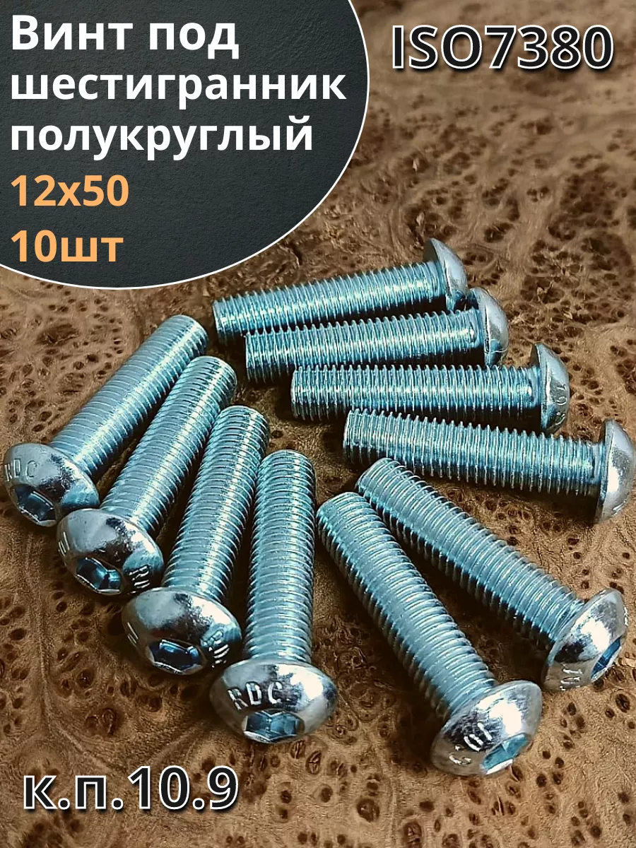 Винт М12х50 с внутренним шестигранником ОЦ 7380к.п.10.9,10шт