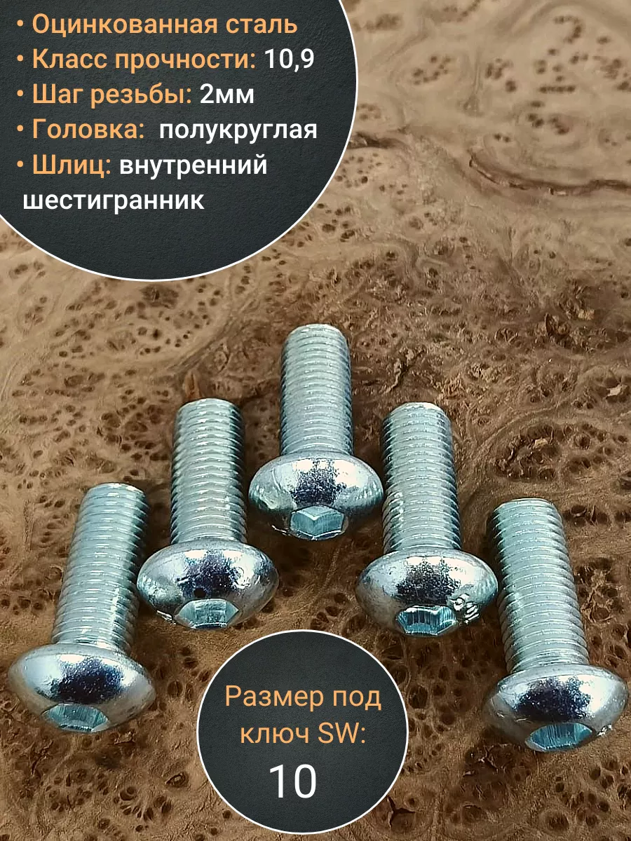 Винт ISO 7380 предназначен для создания резьбовых соединений при выполнении монтажных и сборочных работ, служит для крепления элементов различных конструкций. Винты с внутренним шестигранным приводом подходят для соединений, требующих приложения высокого момента силы для затяжки. Полнорезьбовой винт, оснащенный полукруглой головкой с внутренним шестигранным приводом, представляет собой крепежное изделие общего назначения. Конструкция и размеры винта соответствуют требованиям технического стандарта ISO 7380, вариант изготовления из оцинкованной стали. Материал: Оцинкованная сталь 10.9