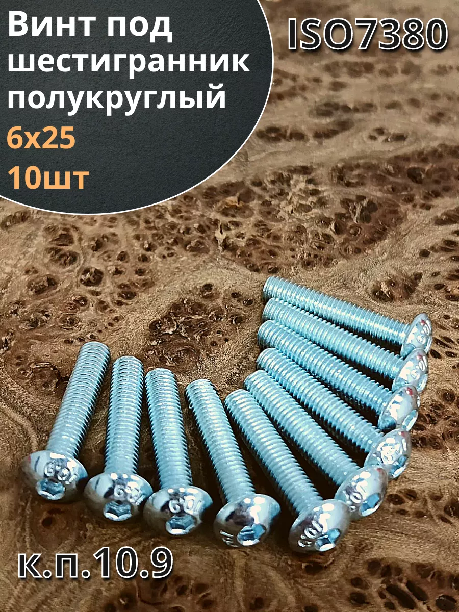 Винт М6х25 с внутренним шестигранником ОЦ 7380 к.п.10.9,10шт