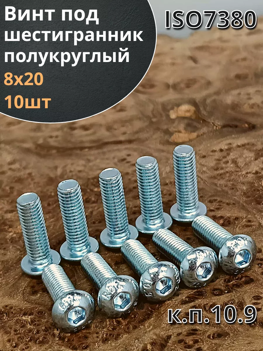 Винт М8х20 с внутренним шестигранником ОЦ 7380 к.п.10.9,10шт