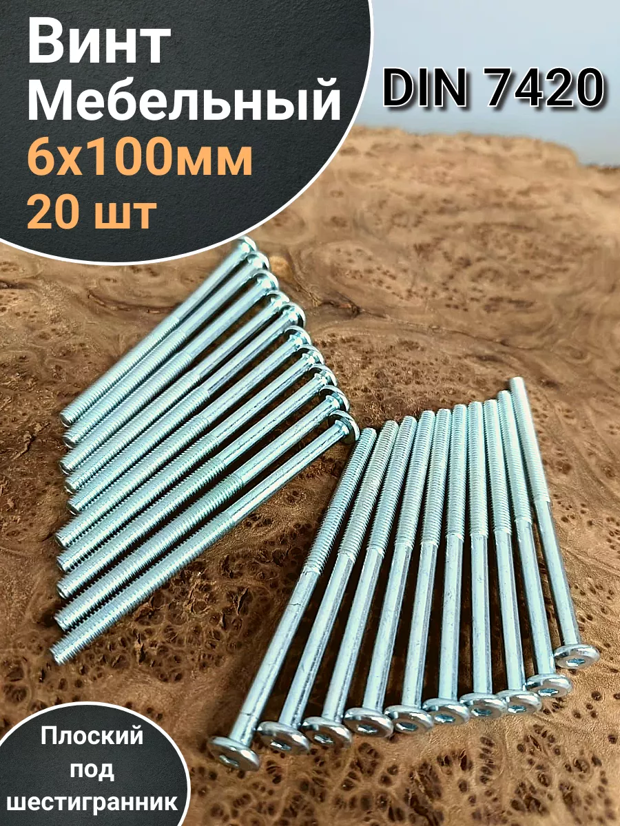 Винт мебельный 6х100 плоский под шестигранник DIN7420,20 шт