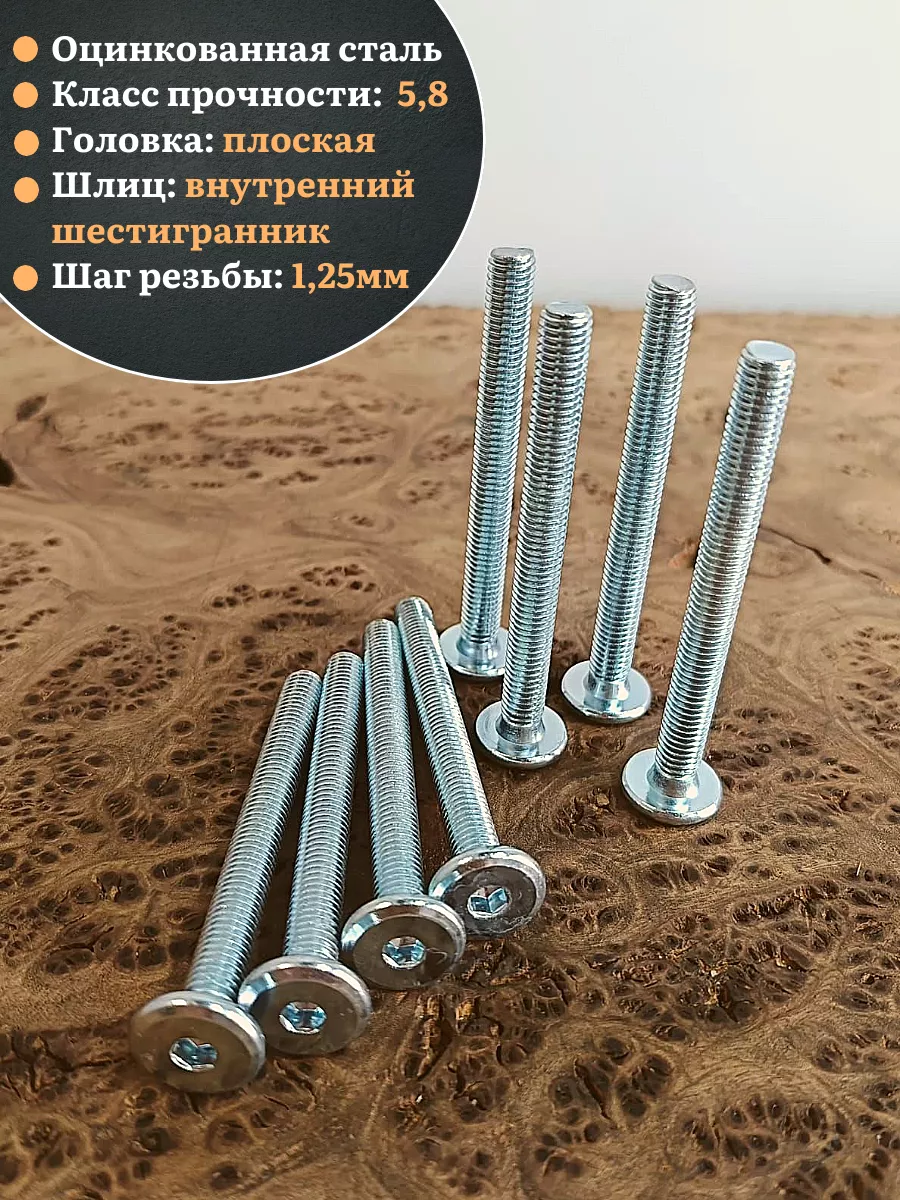 Винт мебельный 8х80 плоский под шестигранник DIN7420,20 шт
