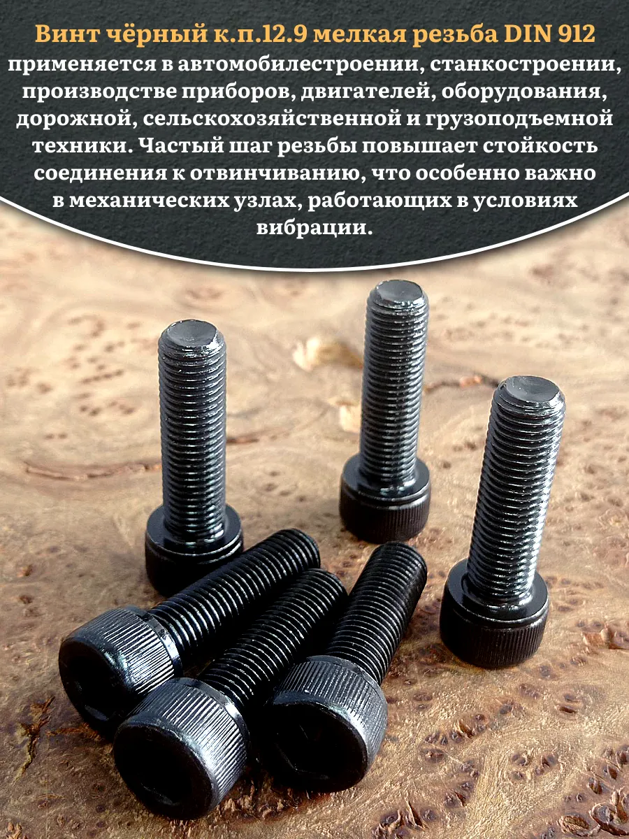 Винт мелкая резьба чёрный к.п.12.9 10х40х1 DIN912, 10 шт.