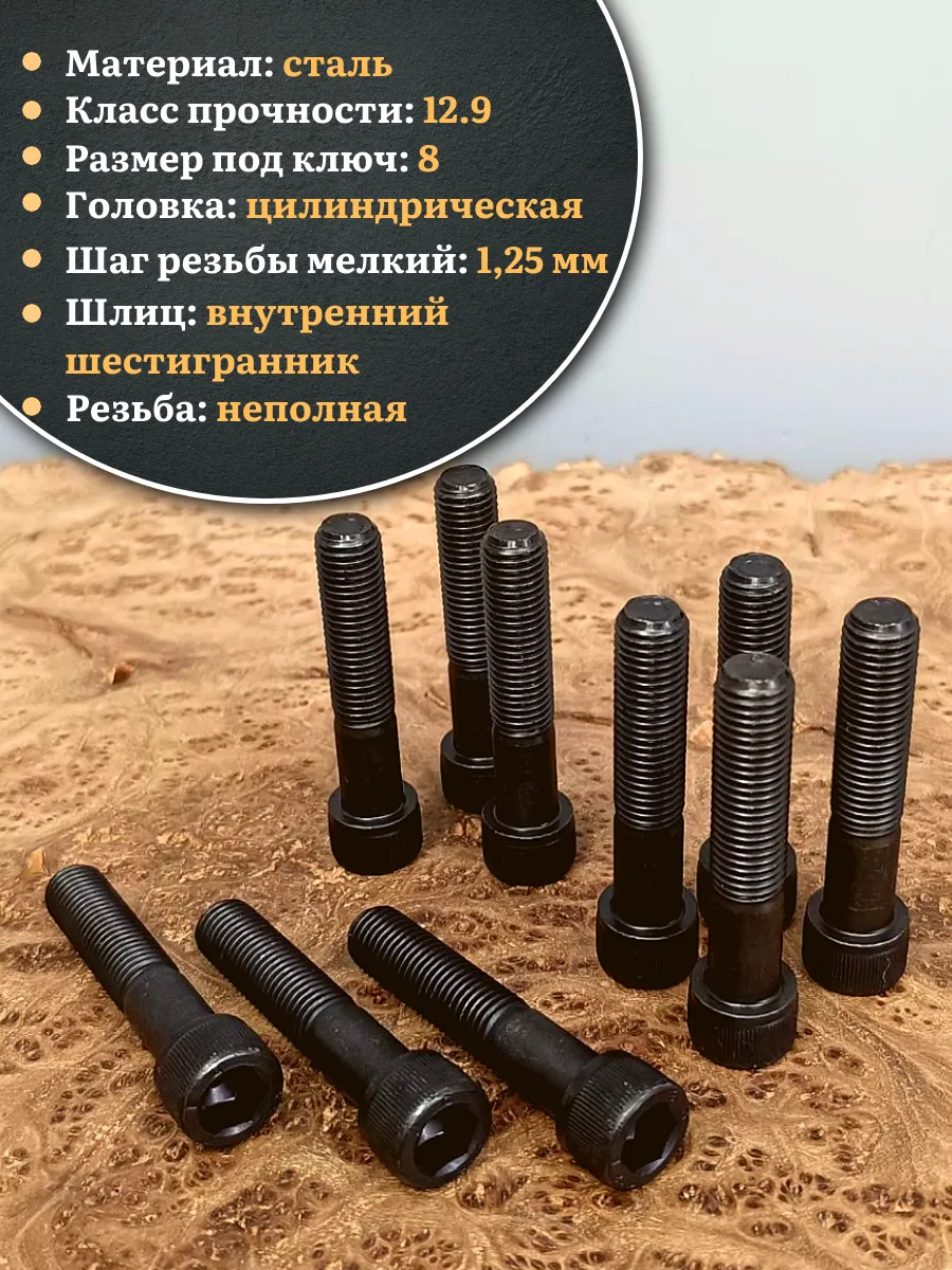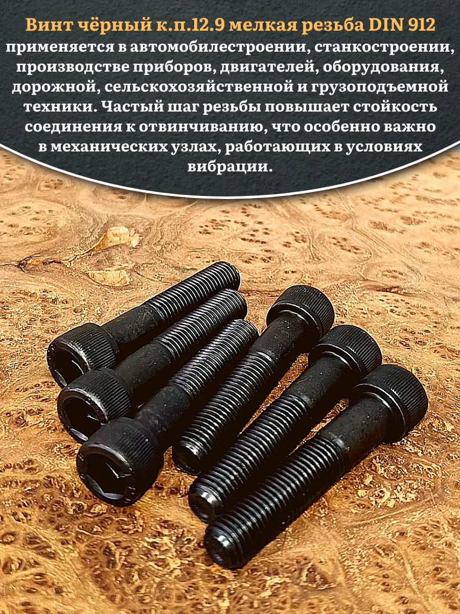 Винт мелкая резьба чёрный к.п.12.9 10х70х1,25 DIN912, 10 шт.