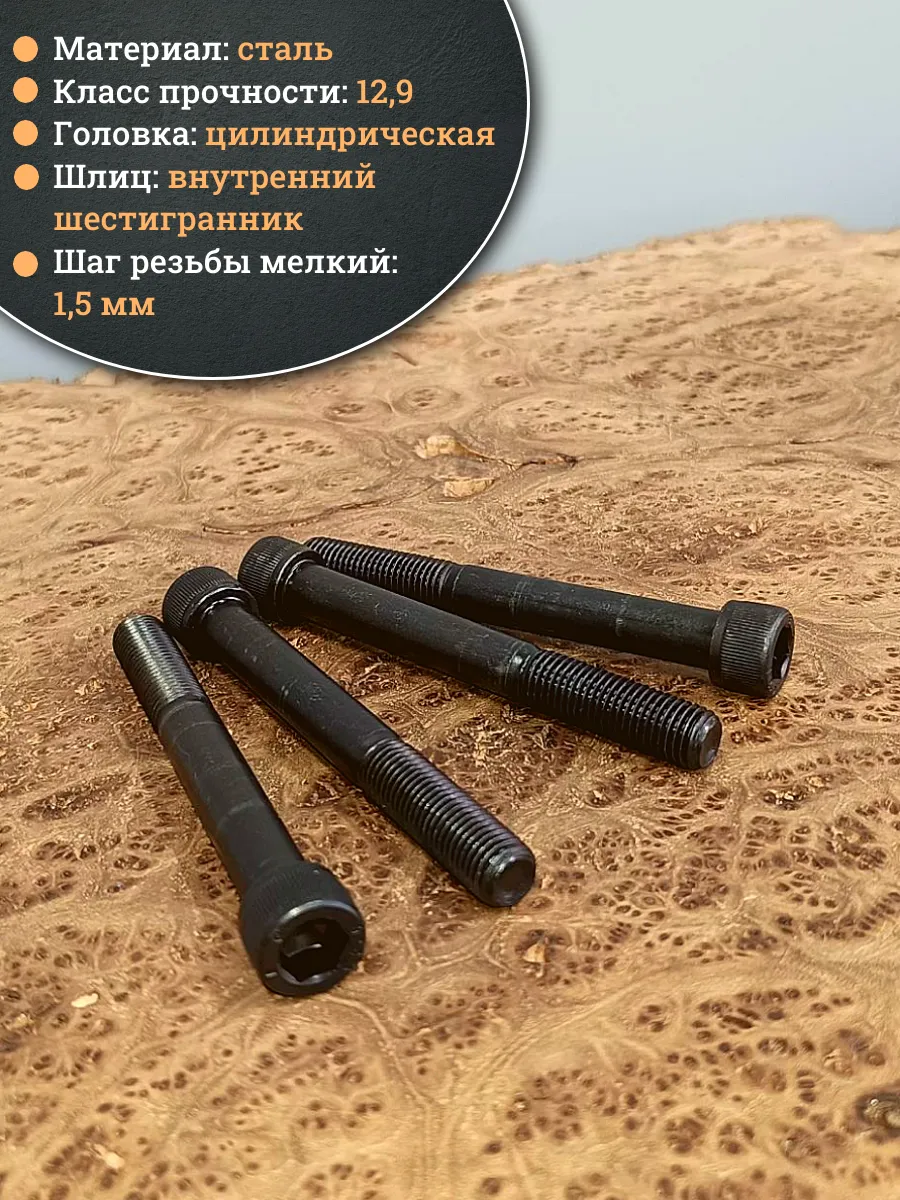 Винт мелкая резьба чёрный к.п.12.9 12х100х1,5 DIN912, 4 шт.
