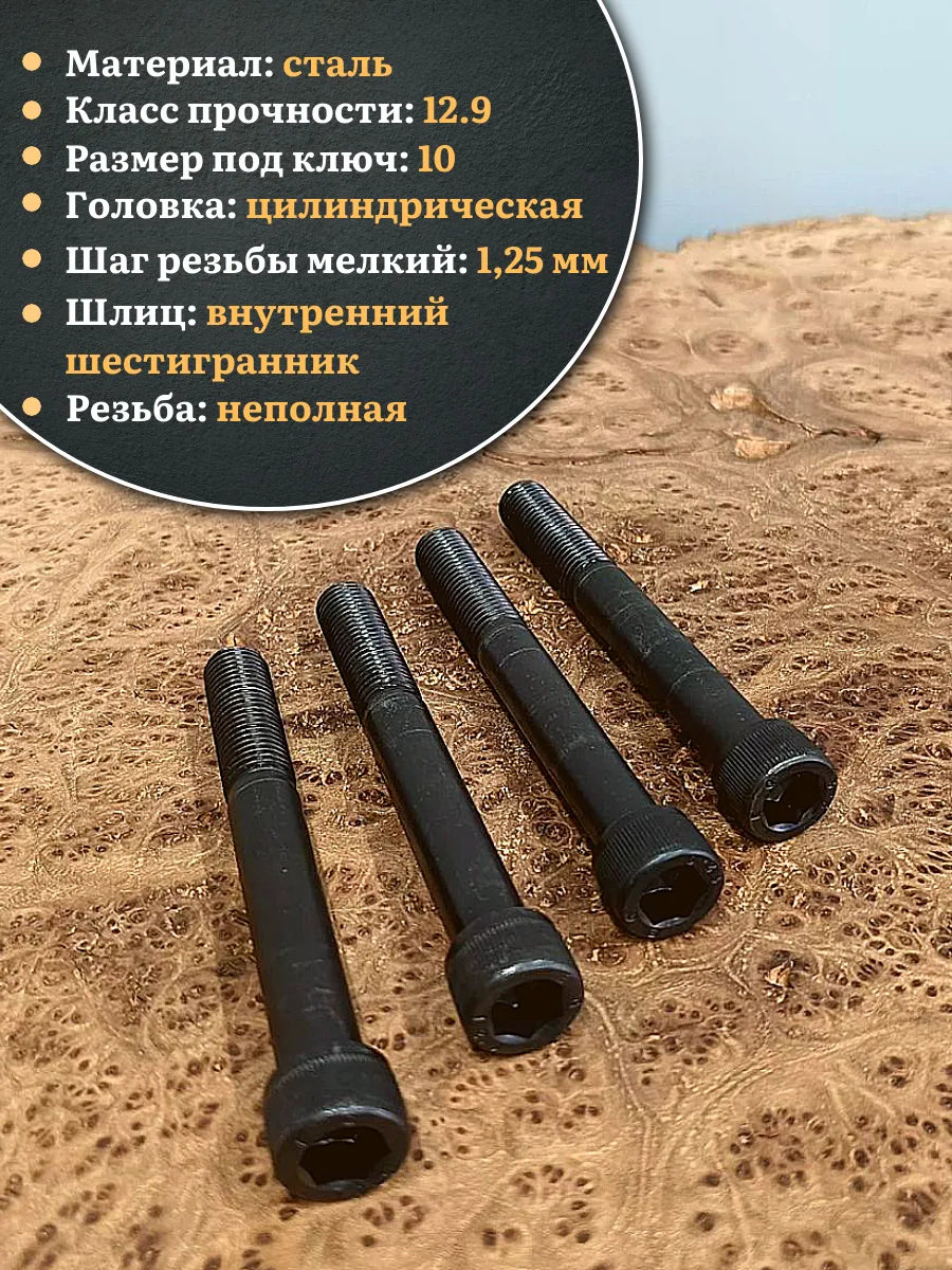 Винт мелкая резьба чёрный к.п.12.9 12х90х1,25 DIN912, 4 шт.