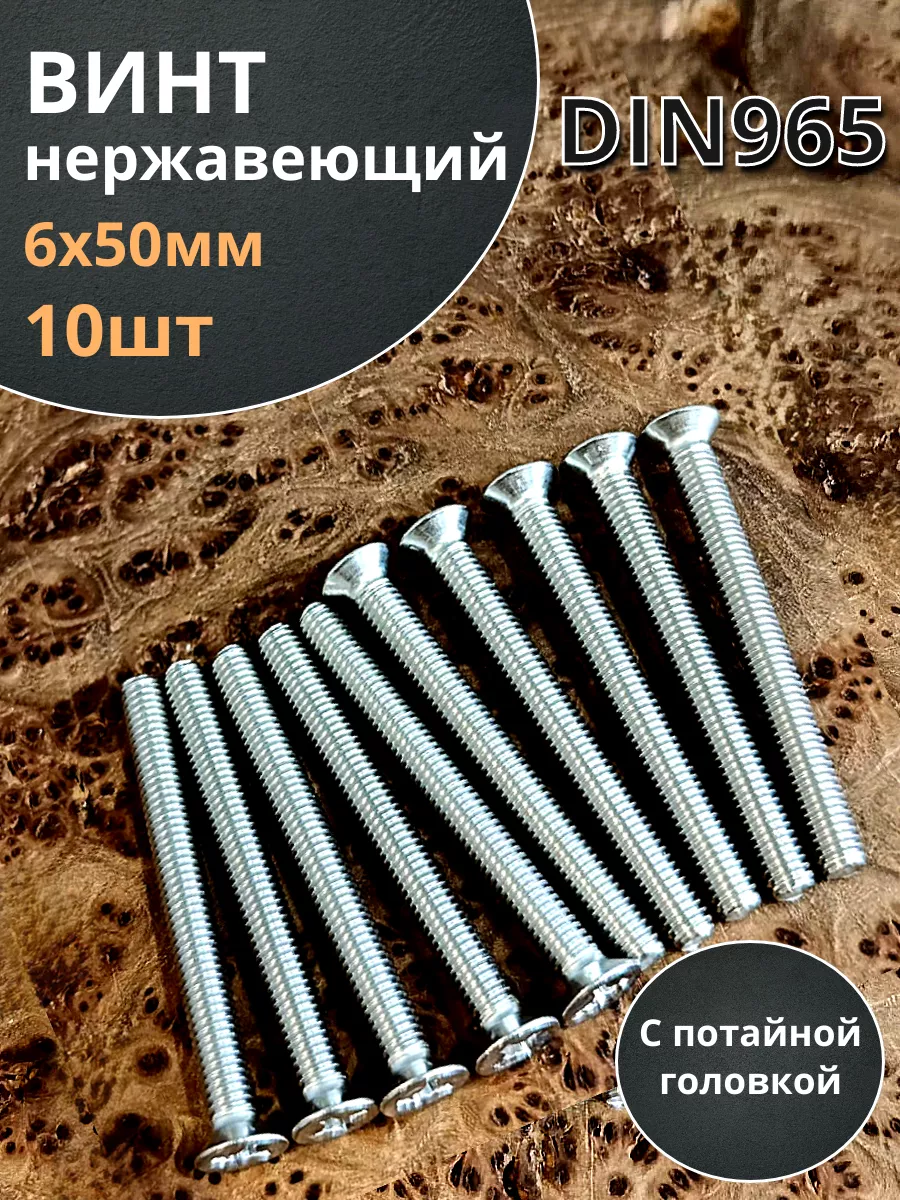 Винт нержавейка М6х50 РН DIN965 10 шт