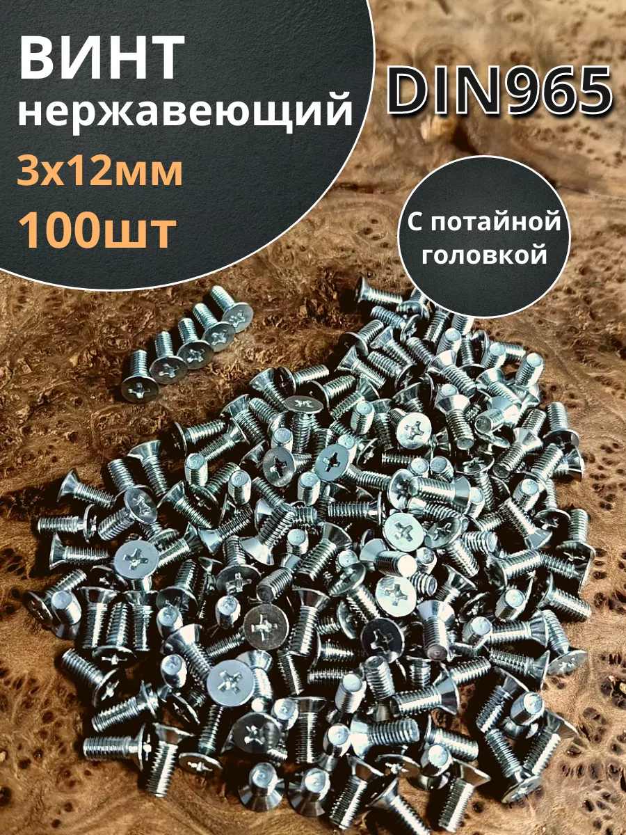 Винт нержавеющий 3х12мм DIN 965 с потайной головкой ,100 шт