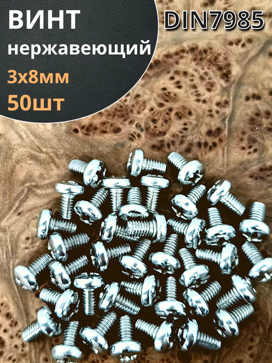 Винт нержавеющий 3х8 мм РН DIN7985, 50 шт.
