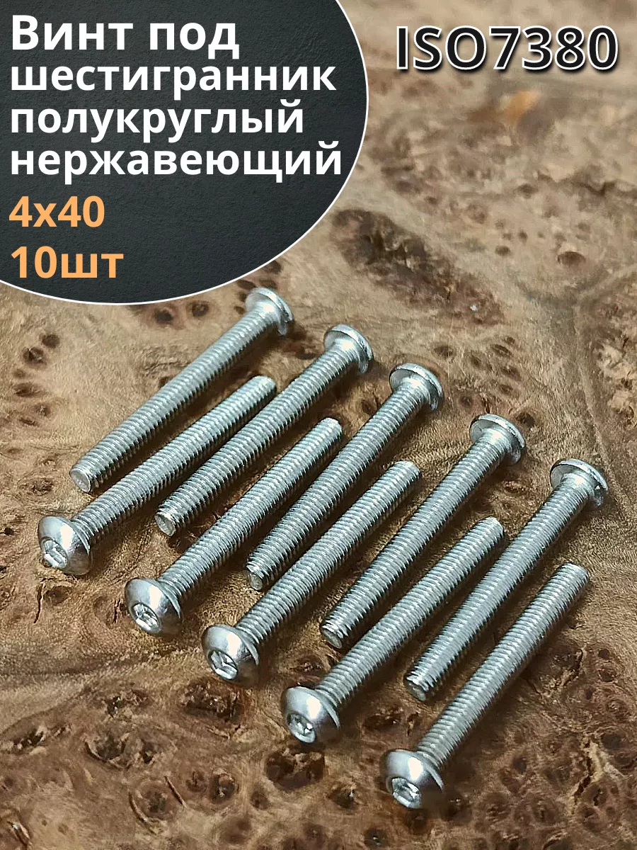 Винт нержавеющий под шестигранник 4х40 мм 7380 ,10 шт.