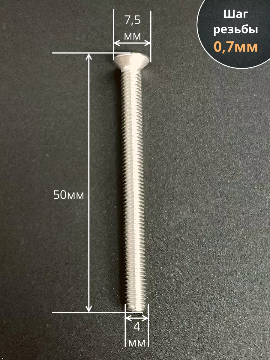 | Винт нержавеющий 4х50 мм DIN 965 с потайной головкой ,50 шт | впн450ф50 | 1 шт. |