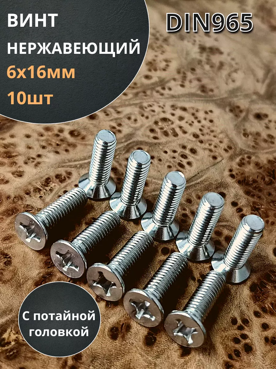 Винт нержавеющий 6х16 мм DIN 965 с потайной головкой ,10 шт