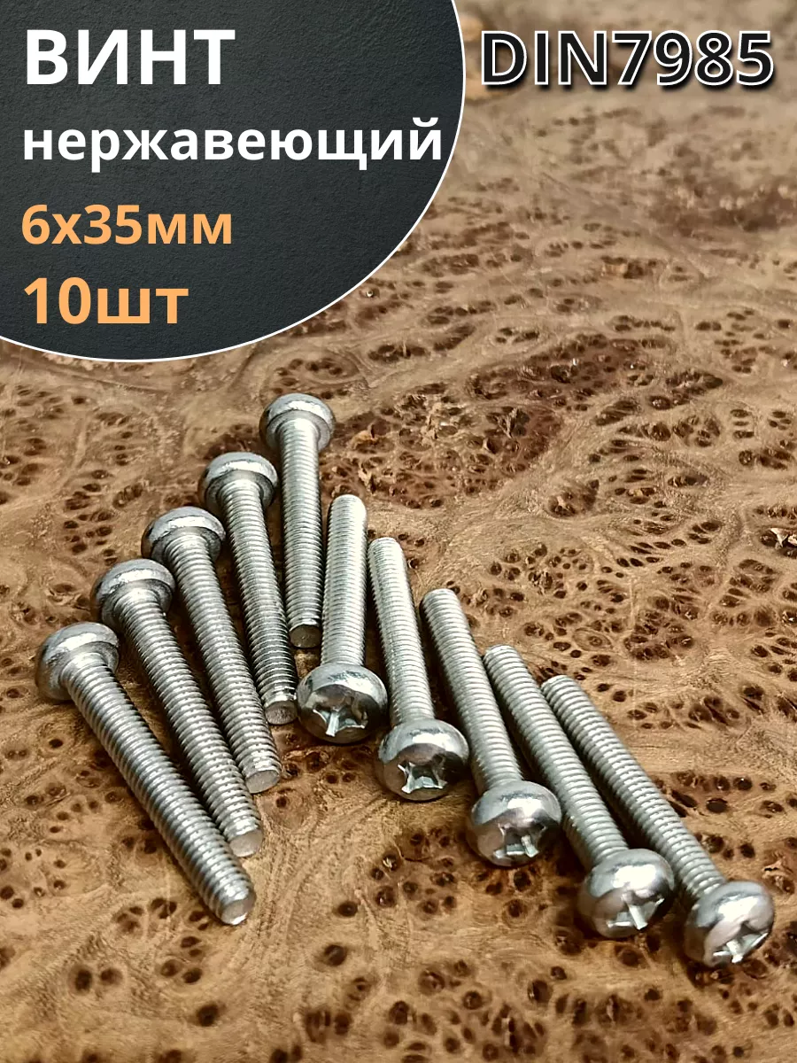 Винт нержавеющий 6х35 мм РН DIN7985, 10 шт.