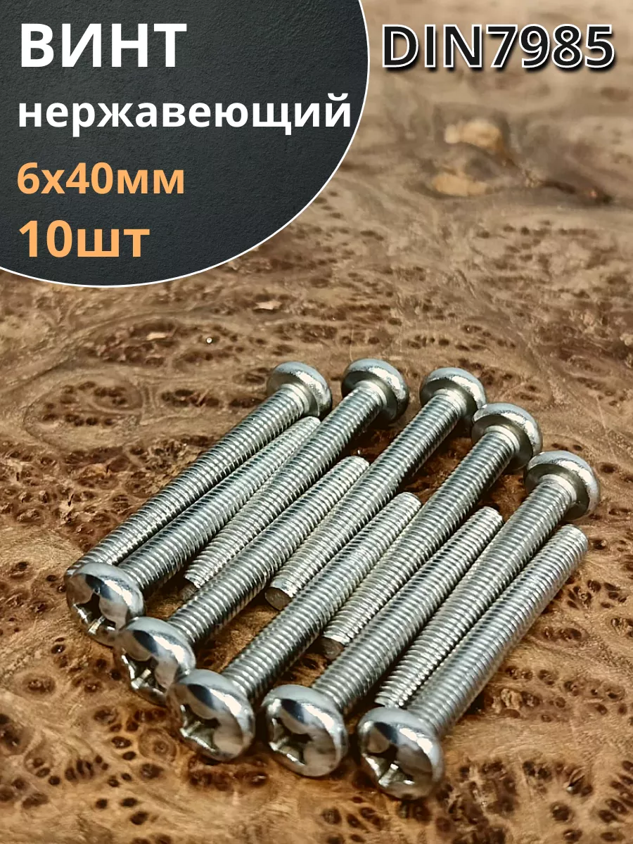 Винт нержавеющий 6х40 мм РН DIN7985, 10 шт.