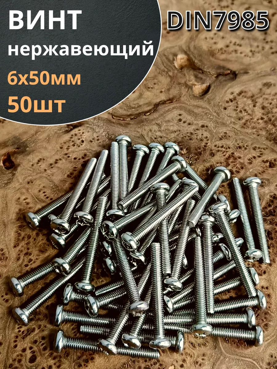 Винт нержавеющий 6х50 мм РН DIN7985, 50 шт.