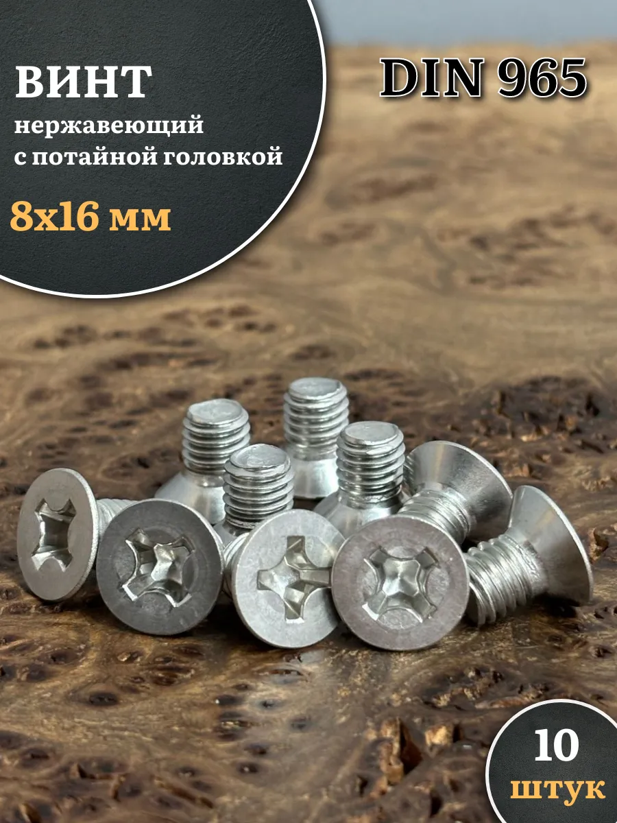Винт нержавеющий 8х16 мм DIN965 с потайной головкой ,10 шт