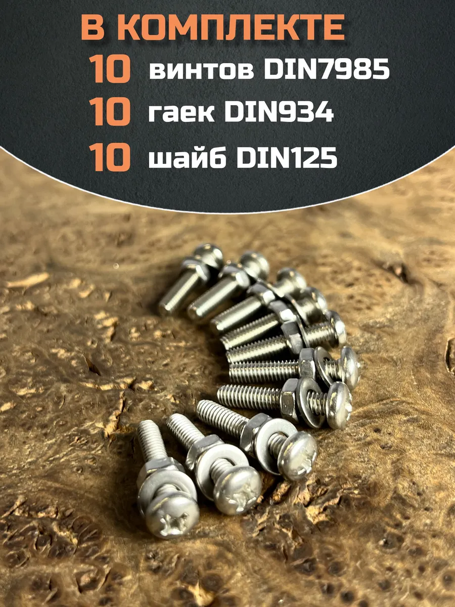Винт нержавеющий с гайкой и шайбой 4х35 мм DIN7985, 10 шт.