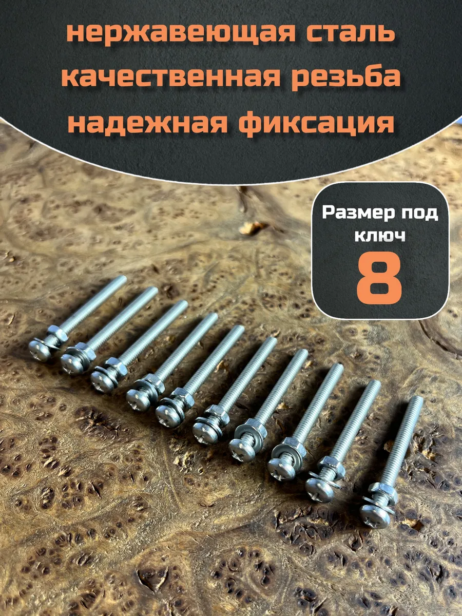 Винт нержавеющий с гайкой и шайбой 5х20 мм DIN7985, 10 шт.