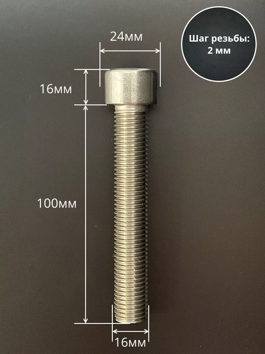 Винт нержавеющий шестигранник М16х100 DIN 912, 4 шт.