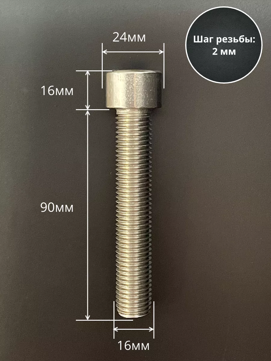 Винт нержавеющий шестигранник М16х90 DIN 912, 4 шт.