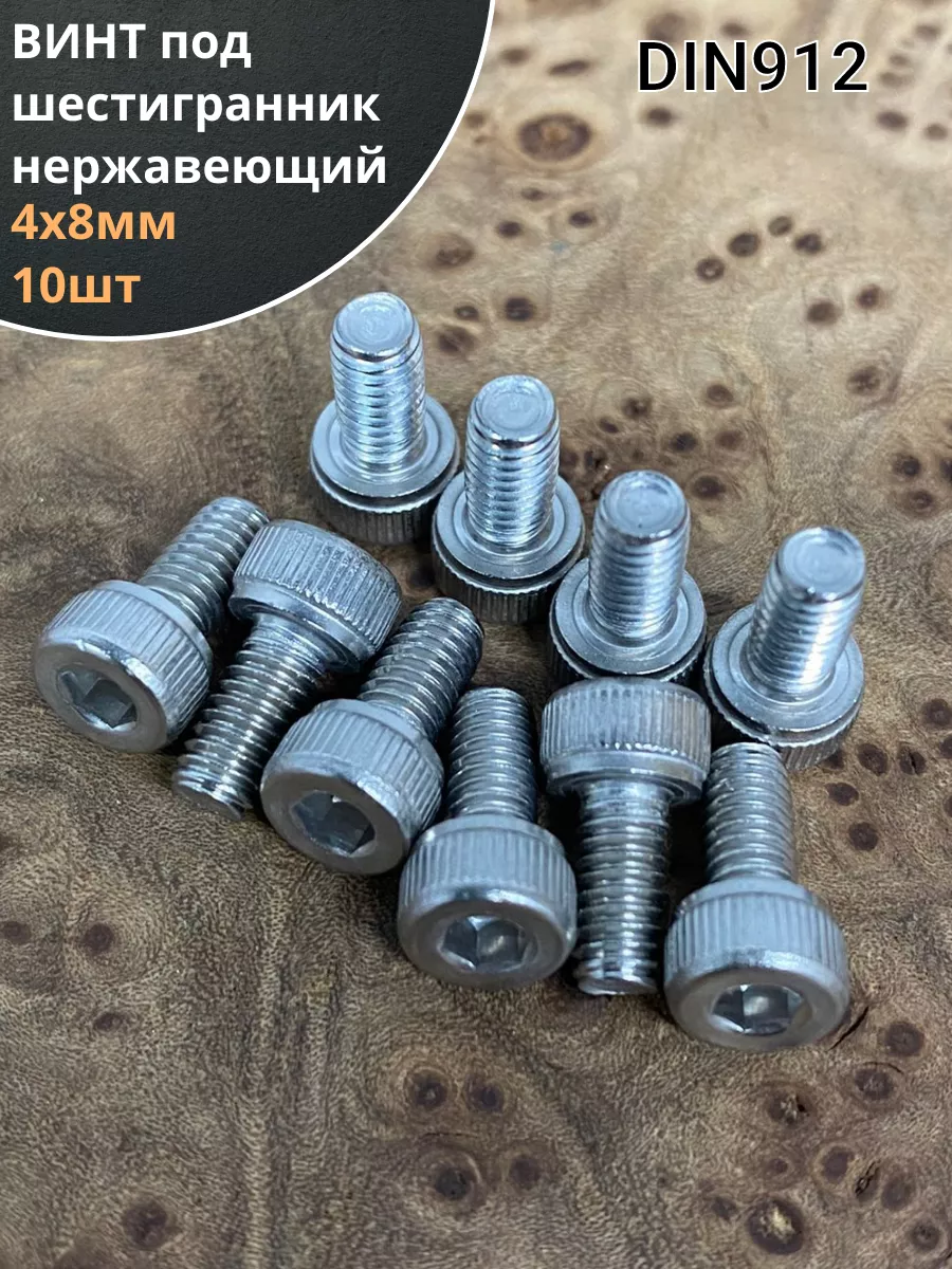 Винт нержавеющий шестигранник М4х8, DIN 912, 10 шт