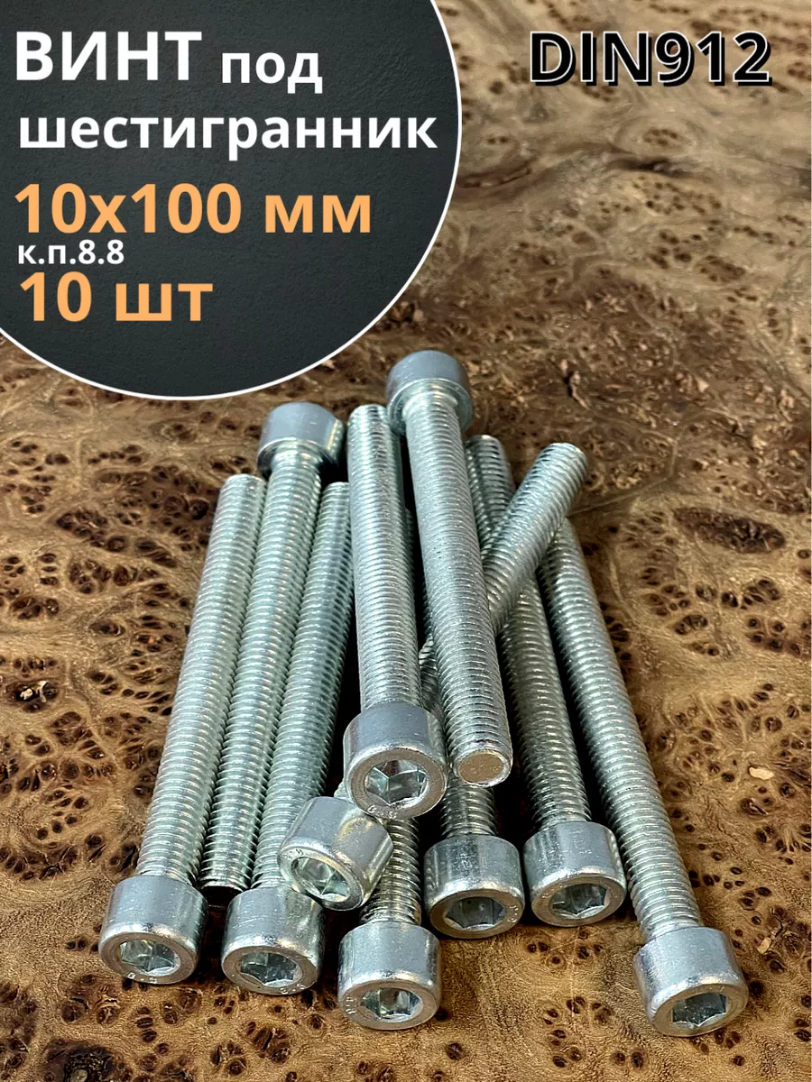 Винт под шестигранник ПР 10х100 мм ОЦ к.п.8.8 DIN912, 10 шт.