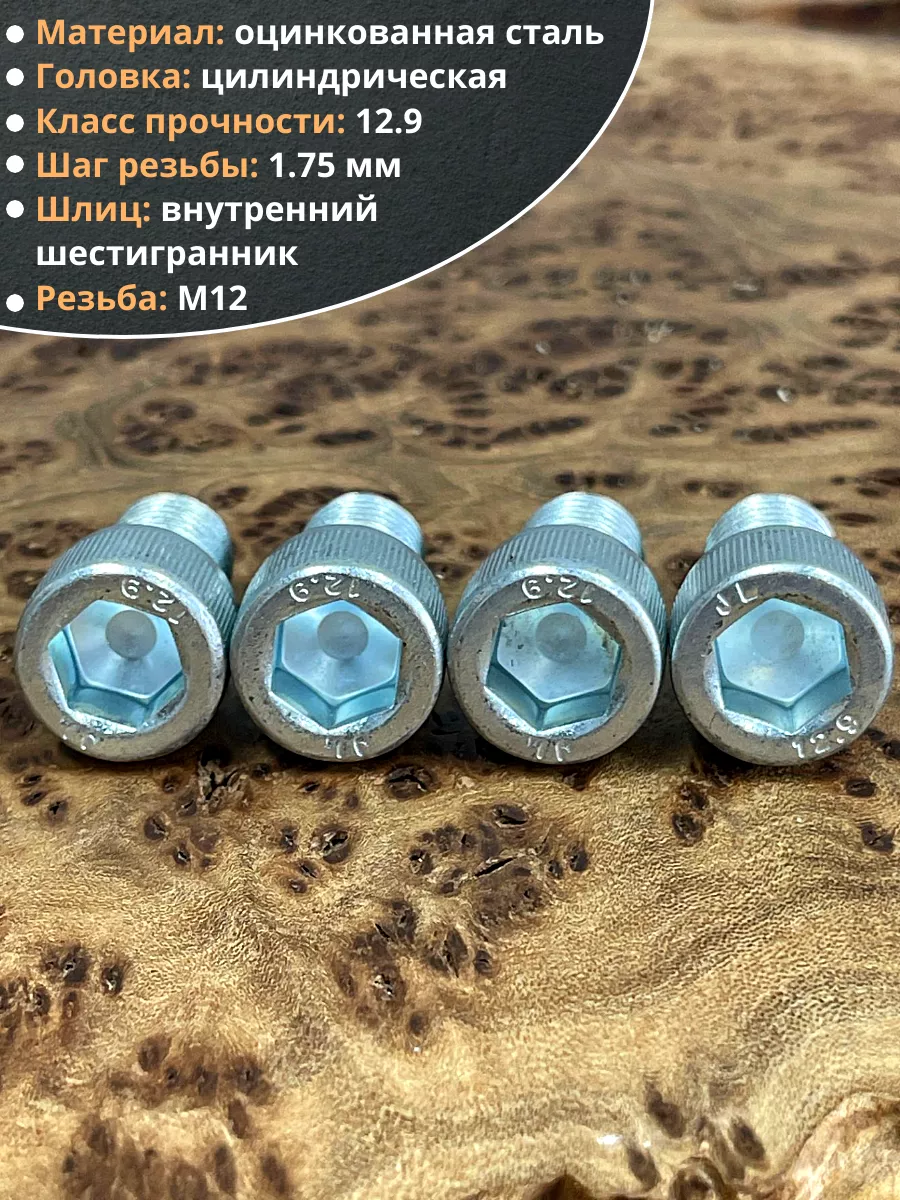 Винт под шестигранник ПР 12х20 мм ОЦ к.п.12.9 DIN912, 4 шт.