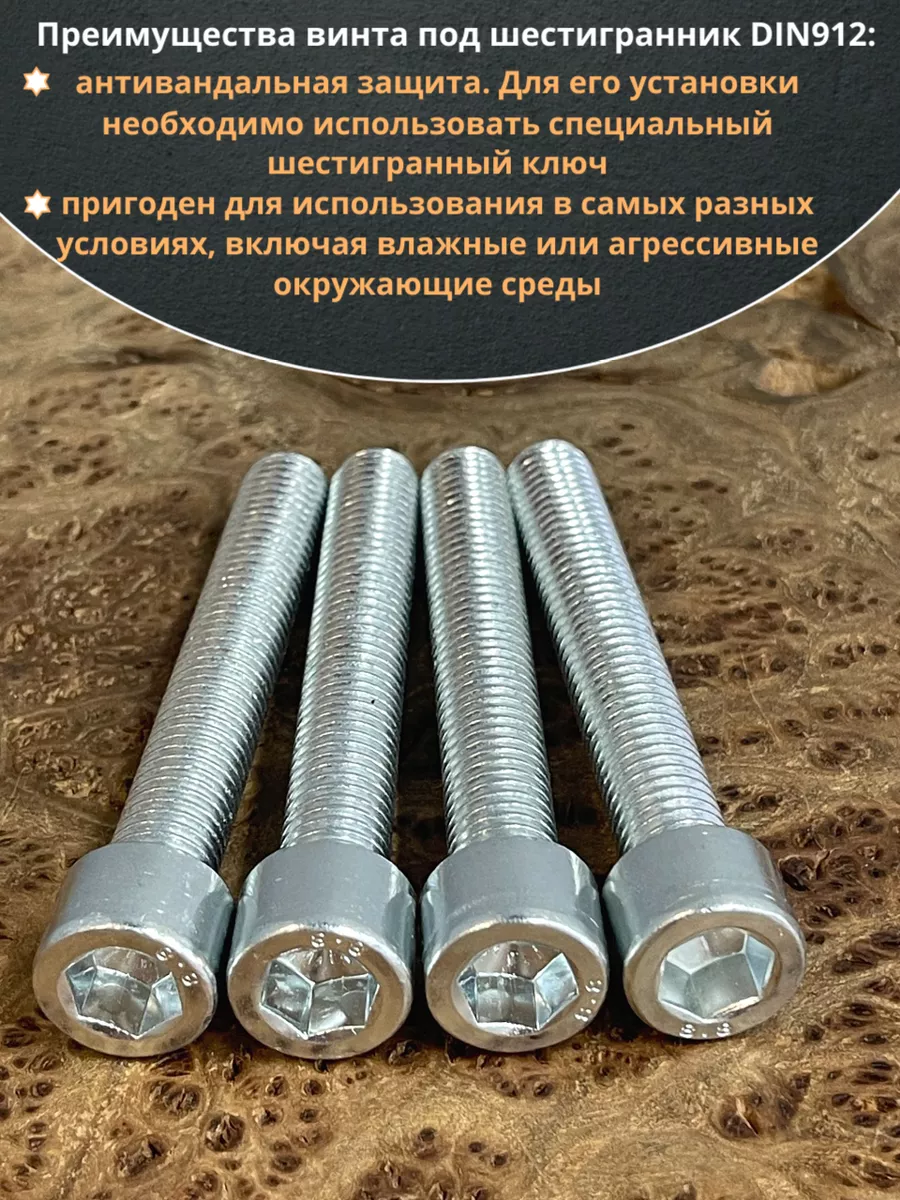 Винт под шестигранник ПР 12х45 мм ОЦ к.п.8.8 DIN912, 10 шт.