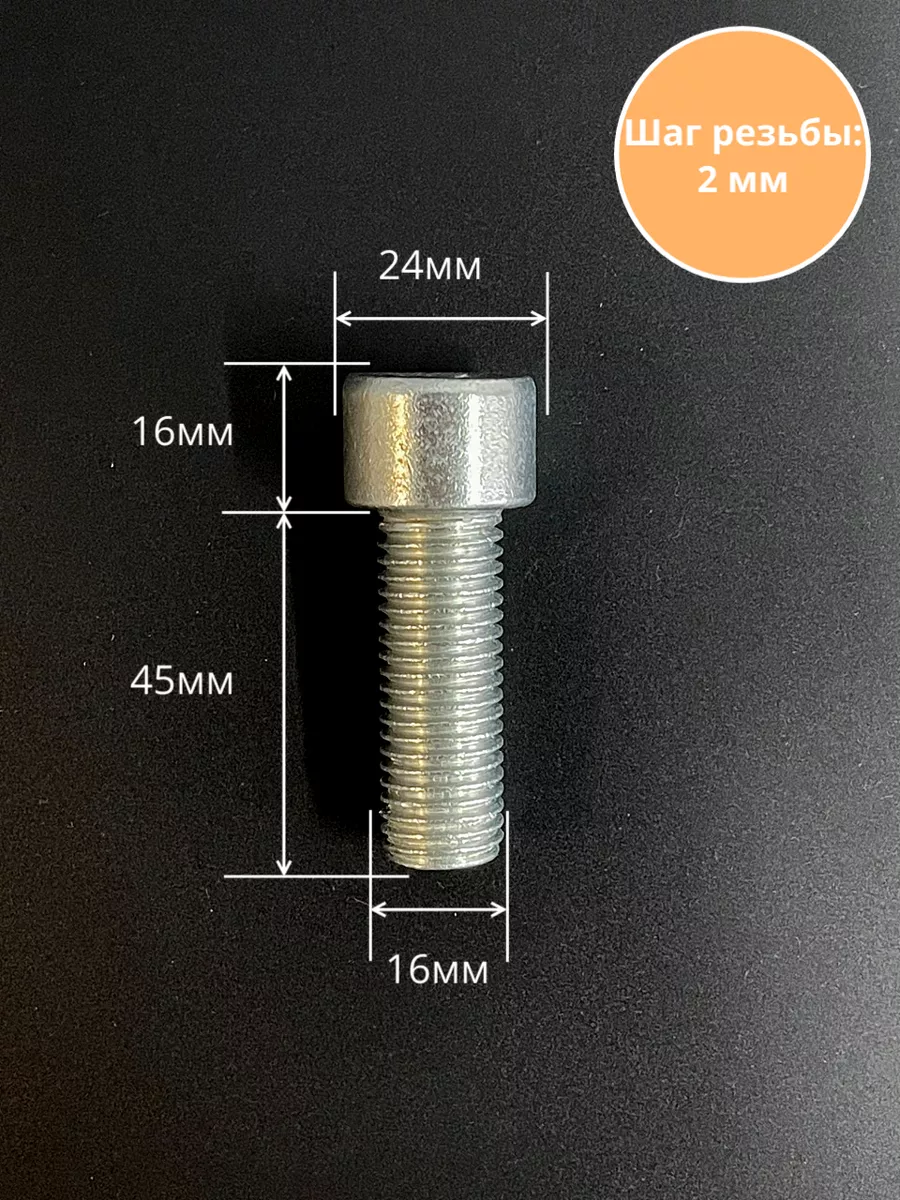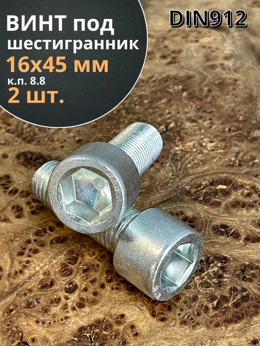 Винт под шестигранник ПР 16х45 мм ОЦ к.п.8.8 DIN912, 2 шт.