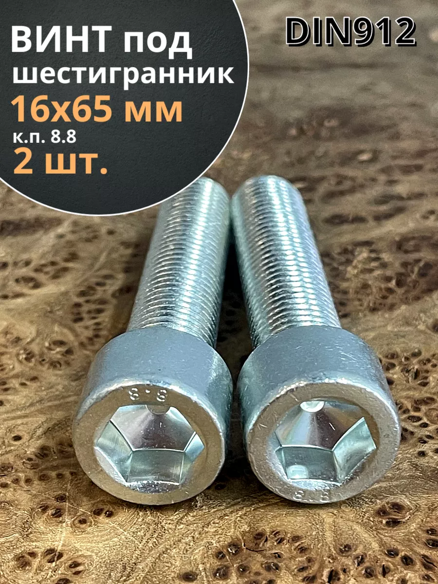 Винт под шестигранник ПР 16х65 мм ОЦ к.п.8.8 DIN912, 2 шт.