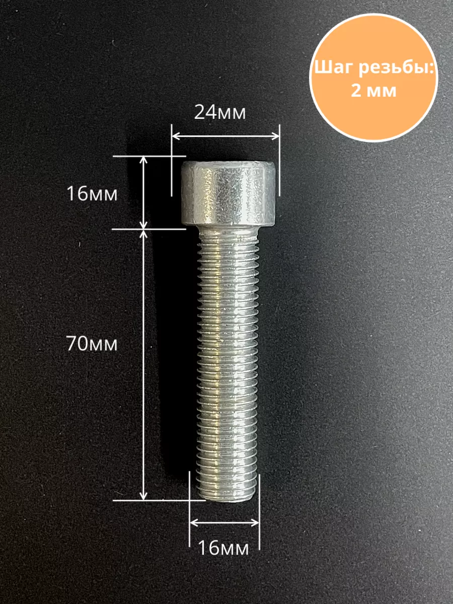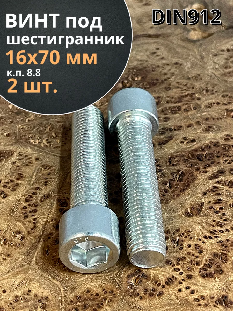 Винт под шестигранник ПР 16х70 мм ОЦ к.п.8.8 DIN912, 2 шт.