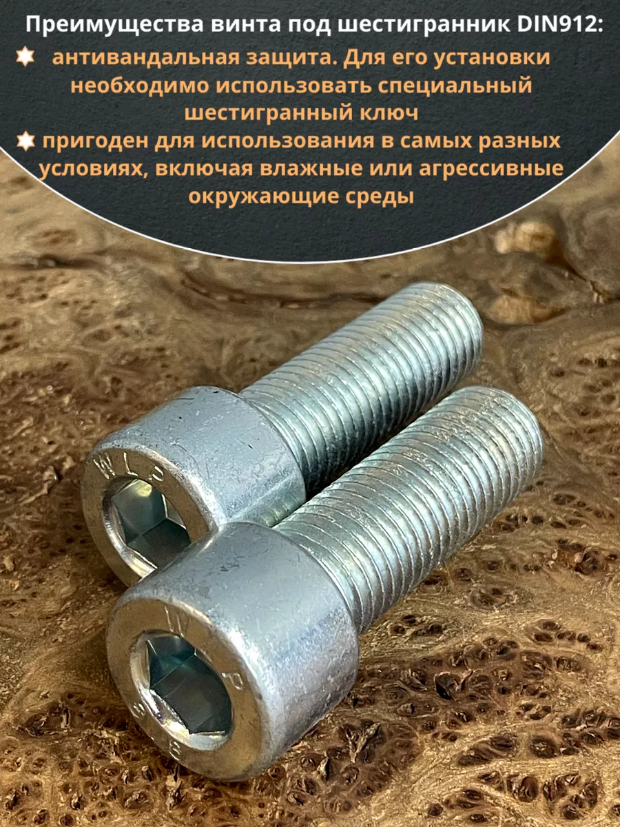 Винт под шестигранник ПР 20х45 мм ОЦ к.п.8.8 DIN912, 2 шт.