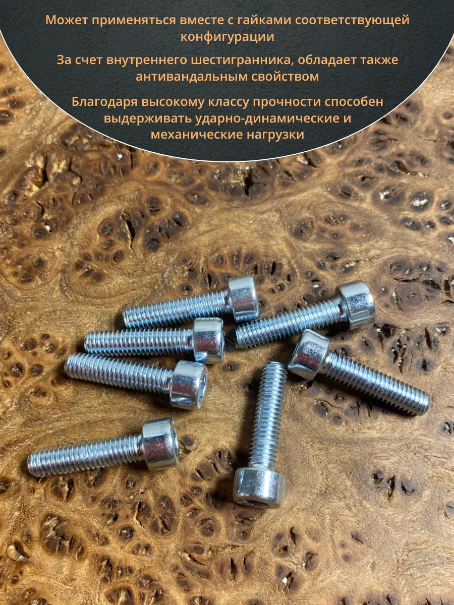 Винт под шестигранник ПР 5х20 мм ОЦ к.п.8.8 DIN912, 10 шт.