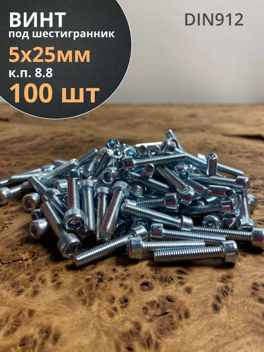 Винт под шестигранник ПР 5х25 мм ОЦ к.п.8.8 DIN912, 100 шт.