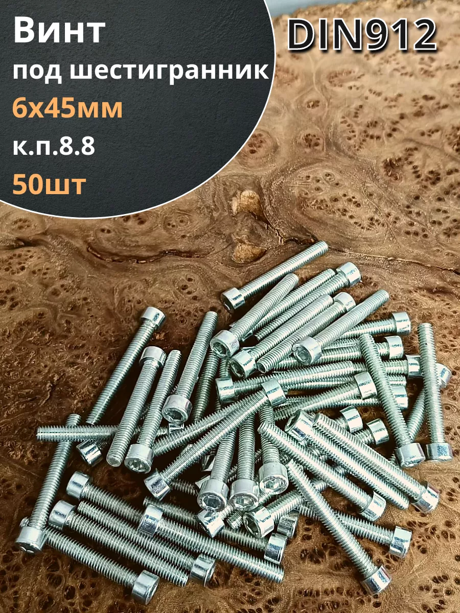 Винт под шестигранник ПР 6х45 мм ОЦ к.п.8.8 DIN912, 50шт.