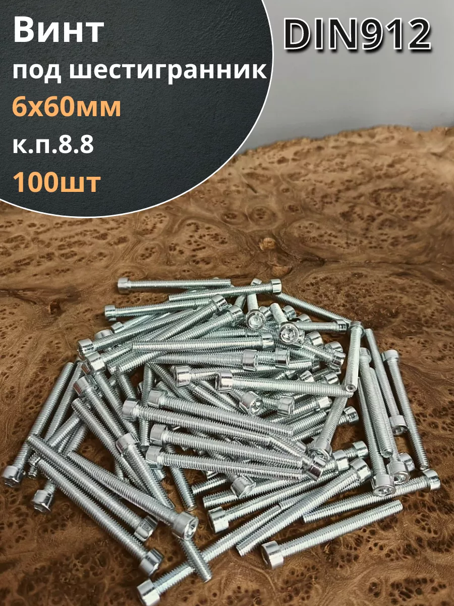 | Винт под шестигранник ПР 6х60 мм ОЦ к.п.8.8 DIN912, 50шт. | А11000606030007ф50 | 1 шт. |